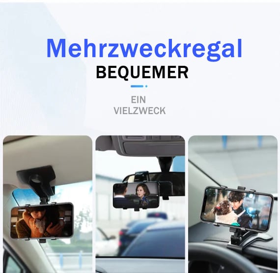 Dieser Handyhalter kann am Armaturenbrett des Autos, am Rückspiegel oder an der Sonnenblende verwendet werden. Egal, ob Sie eine ungehinderte Sicht beim Navigieren benötigen oder im Sitz liegend einen Film anschauen möchten, Sie finden immer eine passende Position, um ihn zu befestigen. Er kann auch in vielen anderen Situationen verwendet werden, wie zum Beispiel auf dem Tisch, im Bücherregal, in der Küche oder im Büro.
