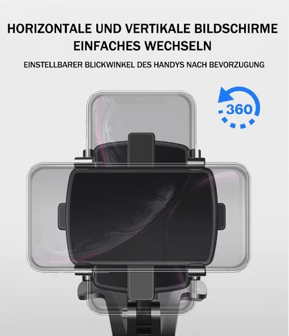 Die Polsterung des Handyhalters kann um 360 Grad gedreht werden, um zwischen Quer- und Hochformat zu wechseln.