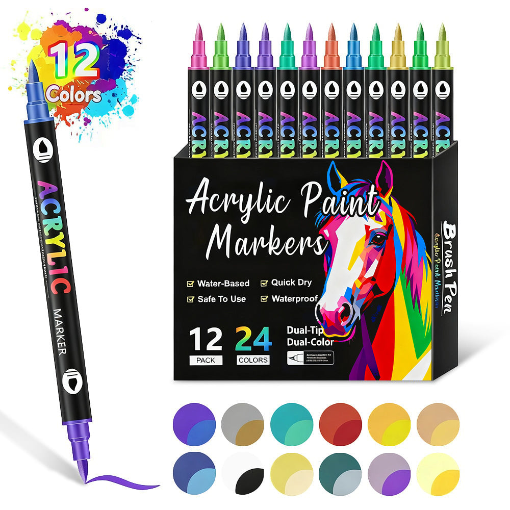 🔥 50 % RABATT! 🌈🖌️ Acrylstift-Marker mit zwei Spitzen – Farbenfroh & vielseitig ✨🎨