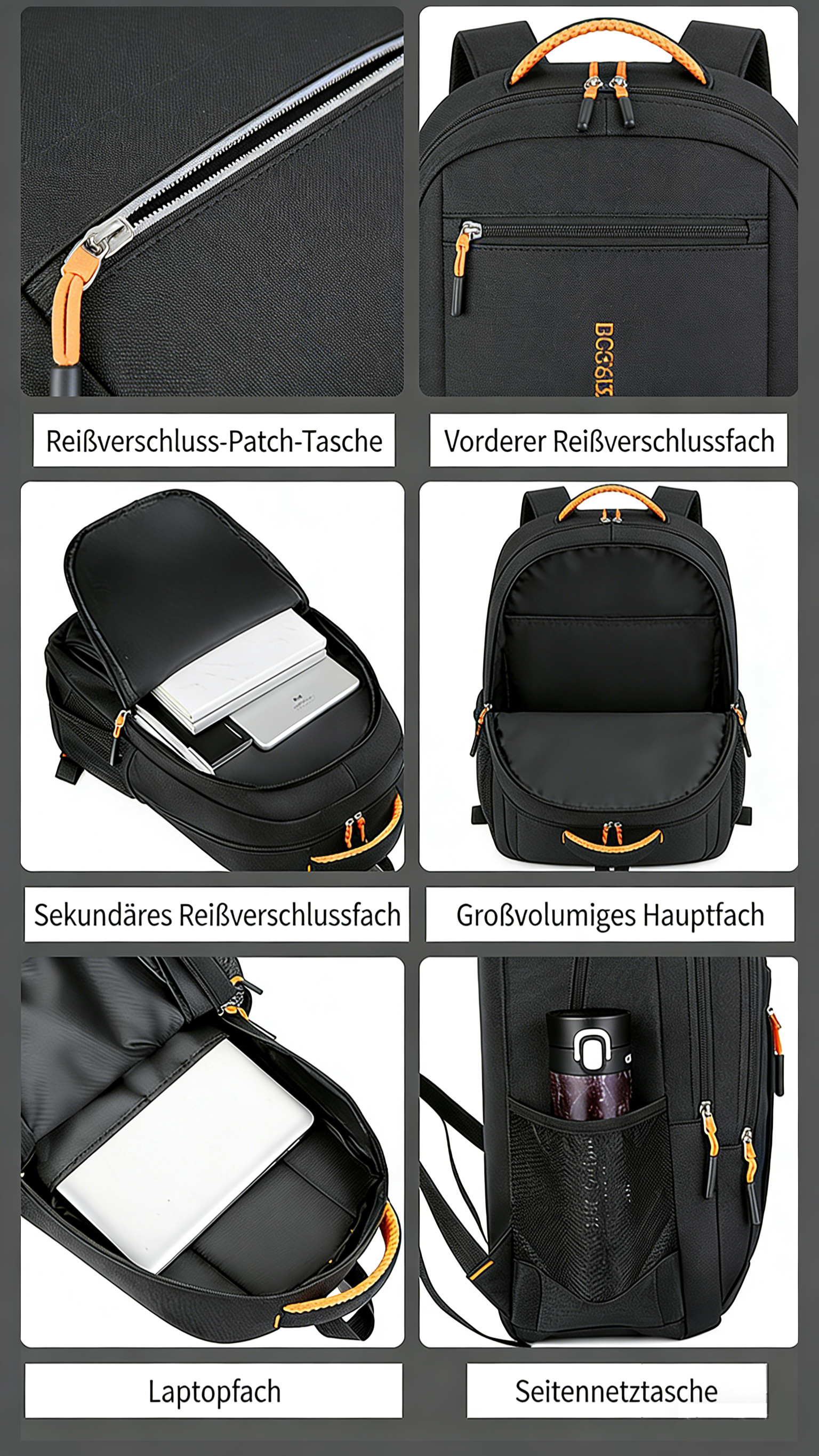 Hochwertige Materialien, stabile Reißverschlüsse und saubere Nähte machen diesen Rucksack strapazierfähig und langlebig.