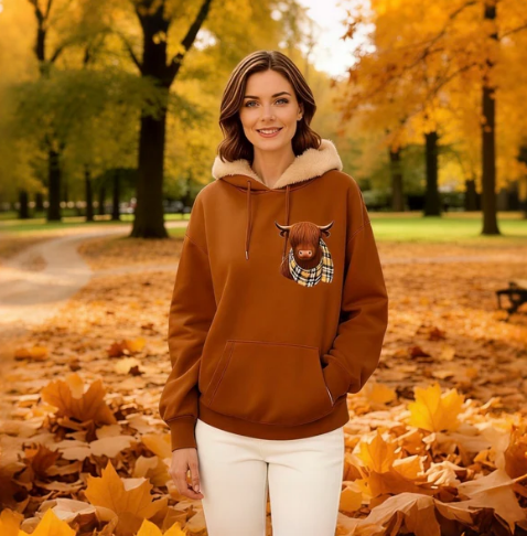 🎄🎅🔥Letzter Tag 50 % Rabatt!!🎁Süßes Highland Cow Sweatshirt mit Kapuze und kuscheligem Fleecefutter🦬