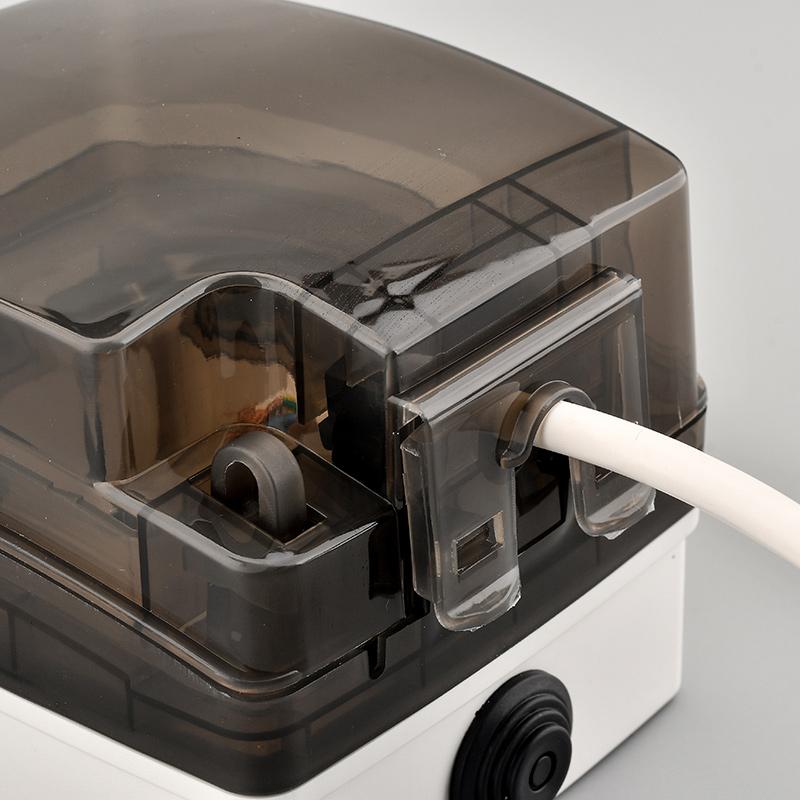 - IP66 Wasserdichtes Design mit hochwertigem PC-Material, UV-Schutz, Korrosionsbeständigkeit. Dieses Produkt wird vertikal installiert und ist garantiert geschlossen. Die Wasserdichtigkeit kann IP66 erreichen.