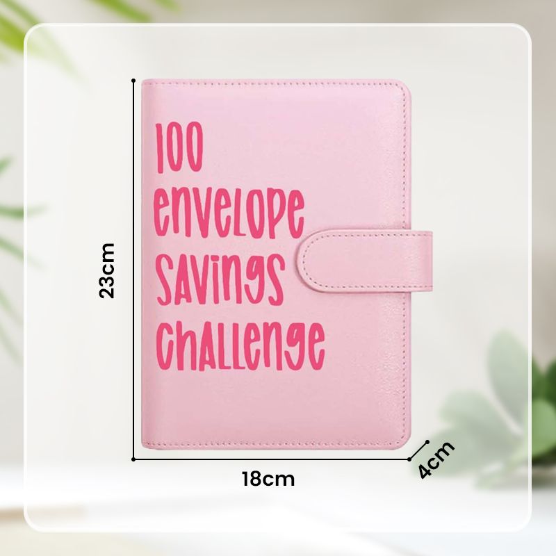 Comes with an A5 size binder (9 inches tall X 7 inches wide), 1 laminated reusable tracker, pouches either labeled 1-100 for the traditional way to save $5,050